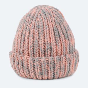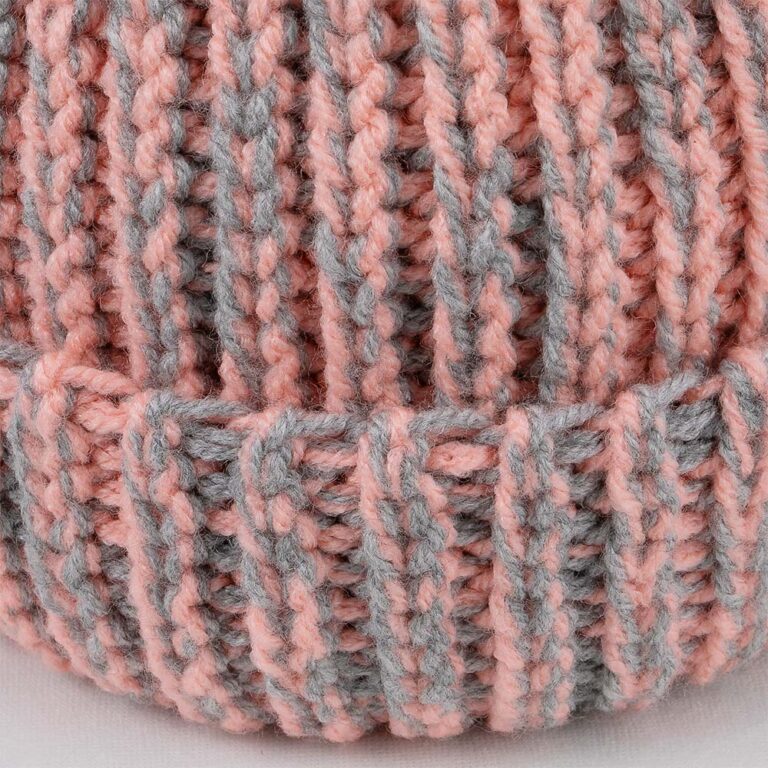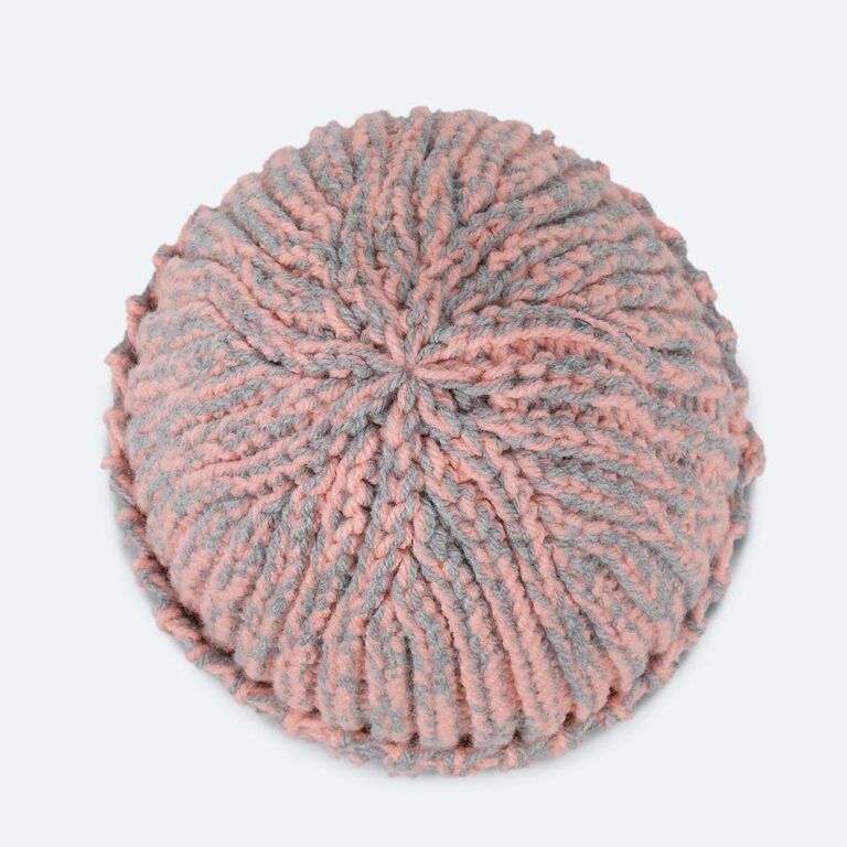 Stickad mössa i tvåfärgat garn.