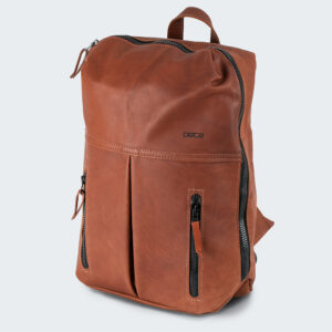 Skinnryggsäck i mjukt följsamt skinn med flera fickor.