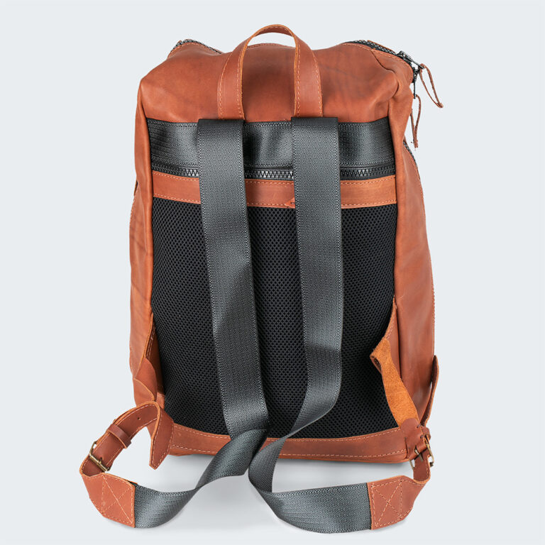 Upptäck en ryggsäck som kombinerar lyxigt mjukt läder med praktisk mångsidighet. Med flera dragkedjefickor, en avtagbar vadderad innerficka och en andningsbar vadderad ryggpanel håller den ordning på dina saker samtidigt som den ger maximal komfort under hela dagen. De bekväma axelremmarna, tillverkade av spillmaterial från bilbälten, ger både styrka och hållbarhet, medan det eleganta bruna lädret ger ett sofistikerat och tidlöst uttryck. Perfekt för vardag, jobb eller resa. Hantverk, funktion och medveten design i varje detalj.